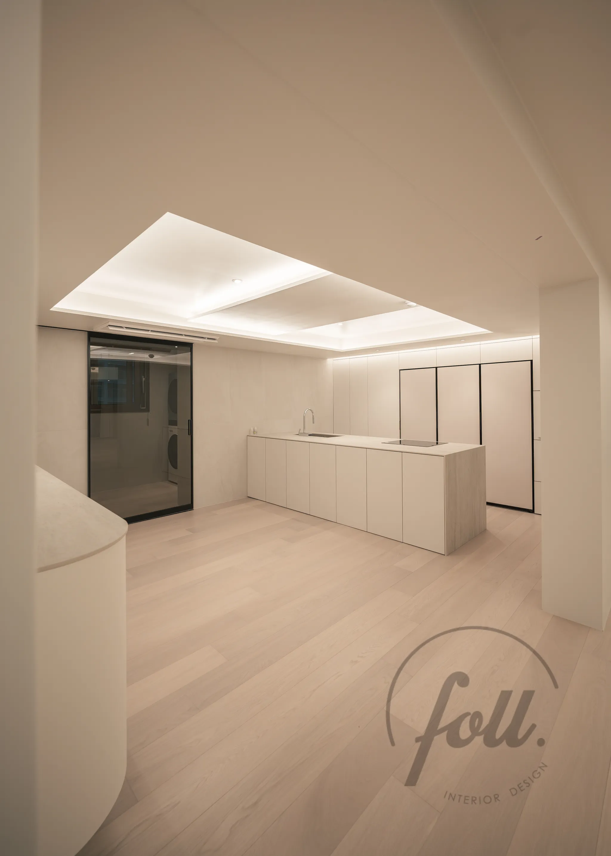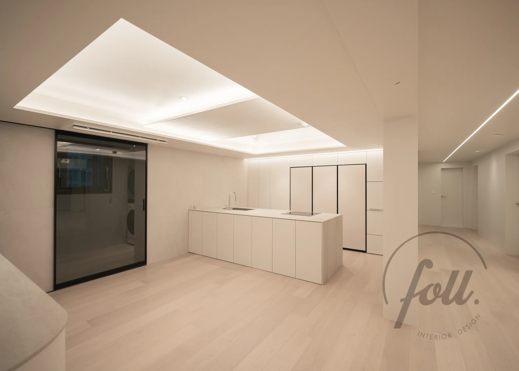 기존 다용도실에 있던 세탁기를 실내로 옮기고, 건식 다용도실과 다이닝룸은 슬라이딩 도어로 분리
